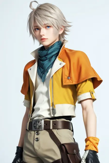 Hope Espheim 提示词: 1boy, 短发, 白发, 蓝眼, 灰发, 金发, 齐刘海, 天线辫