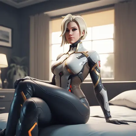 Mercy in her default skin as seen in Overwatch 2! While there's an abundance of her Overwatch 1 design on here (as well as it being promptable on pony), I had a hard time finding her stock Overwatch 2 design, so I decided to give it a shot. Her halo, bodysuit, pelvic curtain, and heels are all able to be prompted.