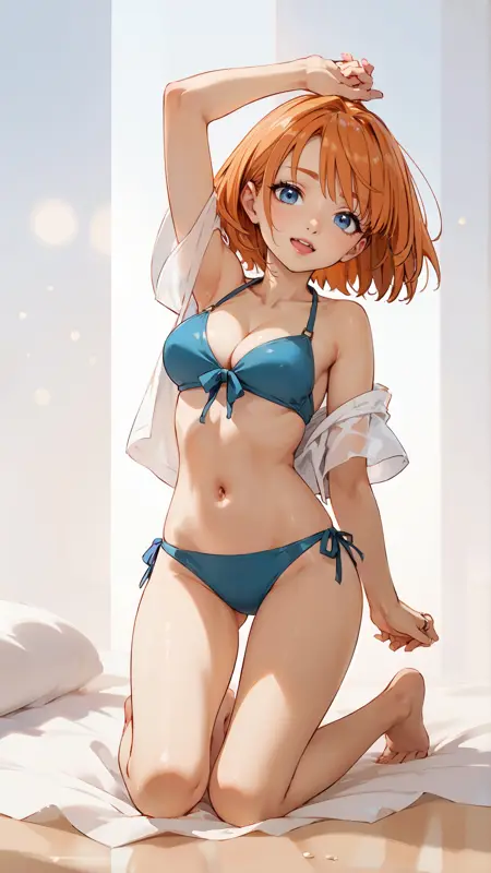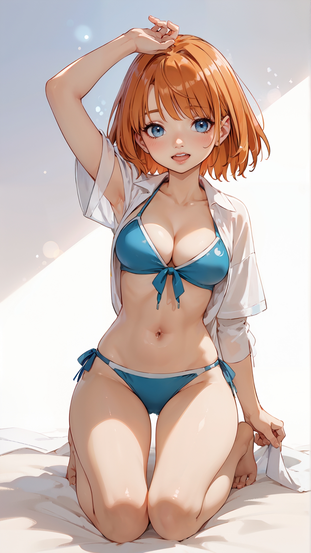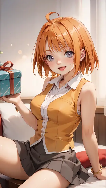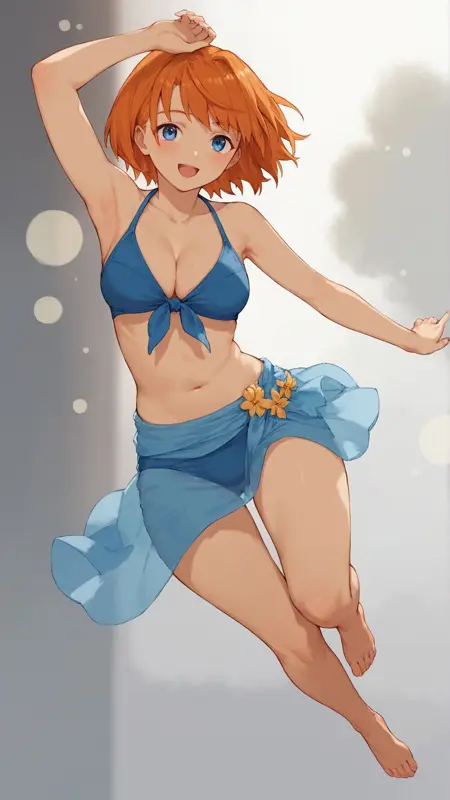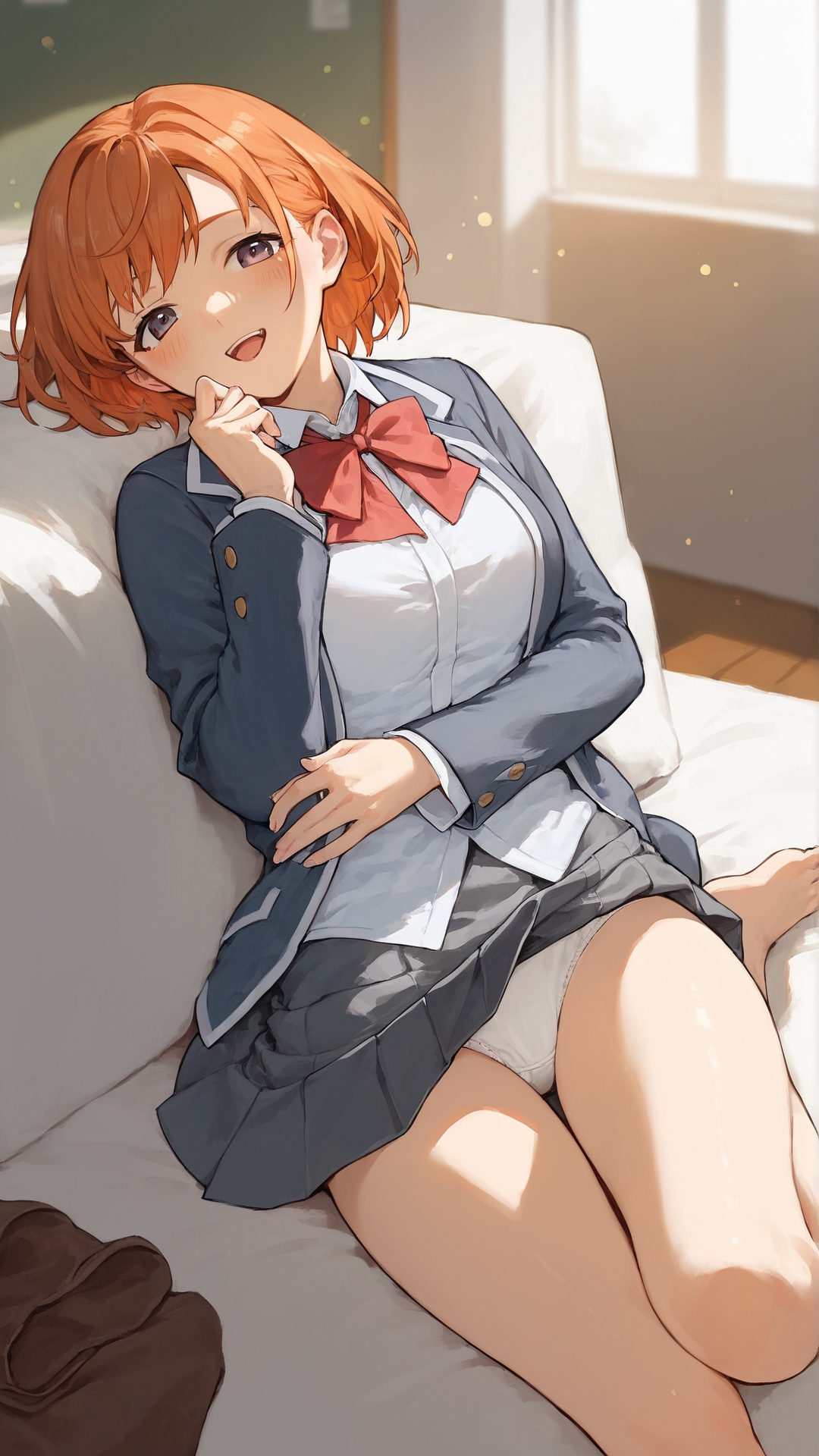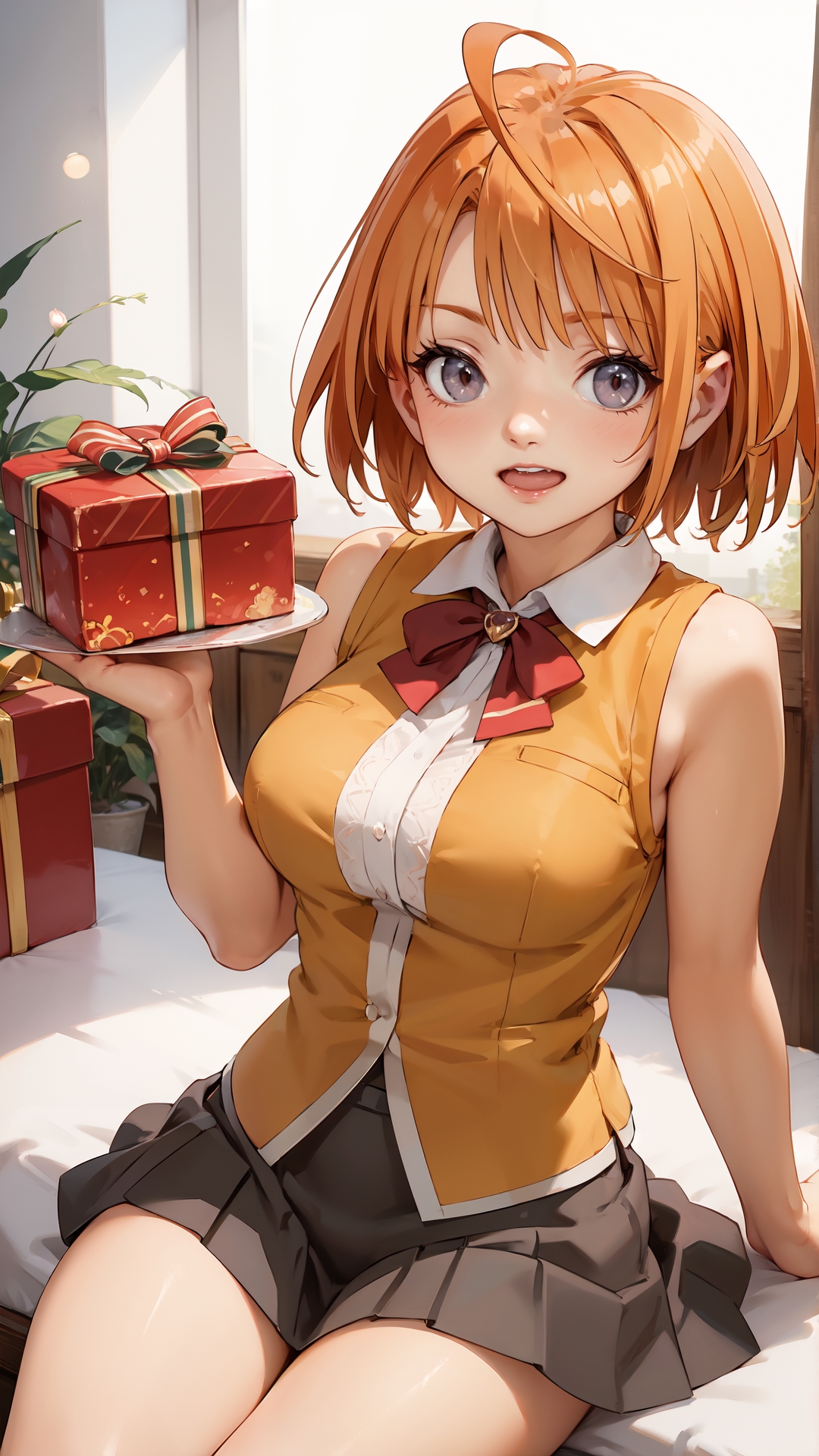 Example prompt : "tokiha_mai, an anime girl, 1girl, solo, breasts, looking at viewer, smile, short hair, open mouth, skirt, large breasts, simple background, shirt, white background, bare shoulders, school uniform, purple eyes, ahoge, pleated skirt, sleeveless, orange hair, hand on hip, oekaki, orange shirt, orange vest"