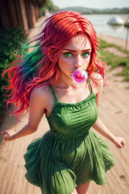 Hi! :) You can create rainbow colored hair with this lora :). Just add lor to the positive promt. Trigger phrase woman with hair the color of ois . I'll be very interested to see what you come up with.