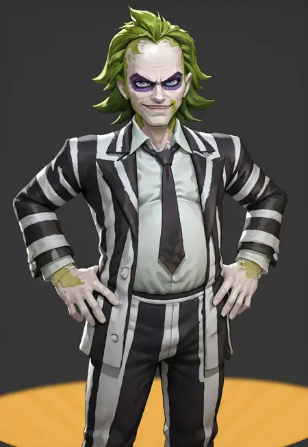 虫虫,绿发,蓝眼,紫色眼影,脸上有绿色霉斑,嘴唇有绿色污渍,微胖,男性,白皮肤,发际线后移
