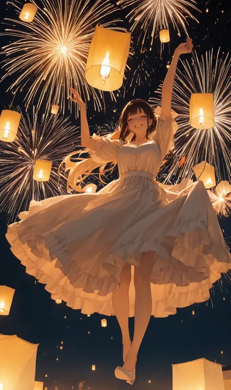 追加タグ:Yipeng、夜空に多数のYipengランタンが飛ぶ大群