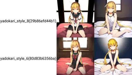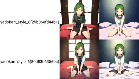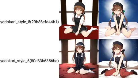 该 LoRA 可用于模仿插画师 Yadokari(亦称 Yadkari,或 やどかり)的风格,其以《舰队Collection》(Kantai Collection)的原画及角色插画而闻名。