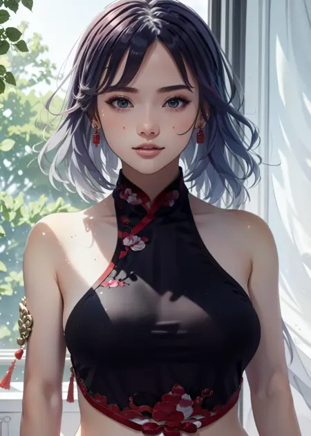 A dudou (Chinese: 肚兜, 兜肚, or 兜兜; also known by other names) is a traditional Chinese article of clothing that covers the front of the torso, originally worn as an undershirt with medicinal properties. With the opening of China, it is sometimes encountered in Western and modern Chinese fashion as a sleeveless shirt and backless halter-top blouse.