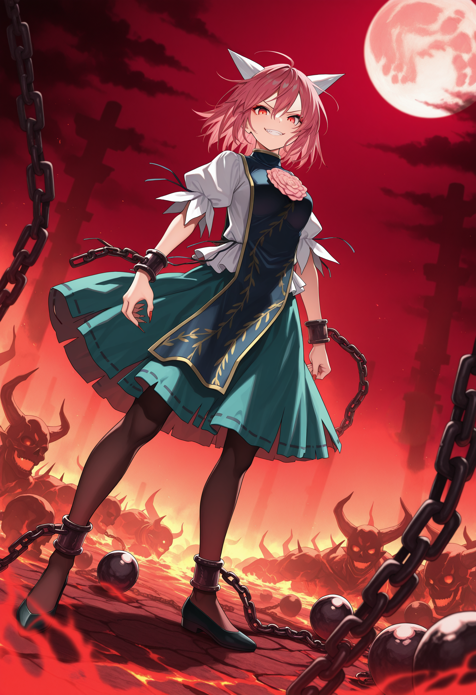 이 모델은 공과 체인으로 된 다리 제한 장치를 처리하는 데 어려움을 겪으며, 프롬프트에 이를 추가하면 팔에도 부착하거나 배경에 철공 더미를 두는 등의 바람직하지 않은 행동이 발생합니다. 현재 이 특성을 위해 별도의 LoRA를 제작할 계획이므로, 그때까지 양해 부탁드립니다.
