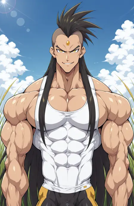 I originally intended him to be a Dragon Ball/Shaman King style OC but later morphed into a generic long haired muscular dude of slender frame with a hindu-esque forehead dot, fingerless gloves and compression pants.