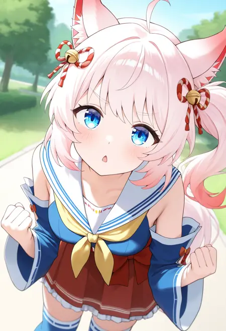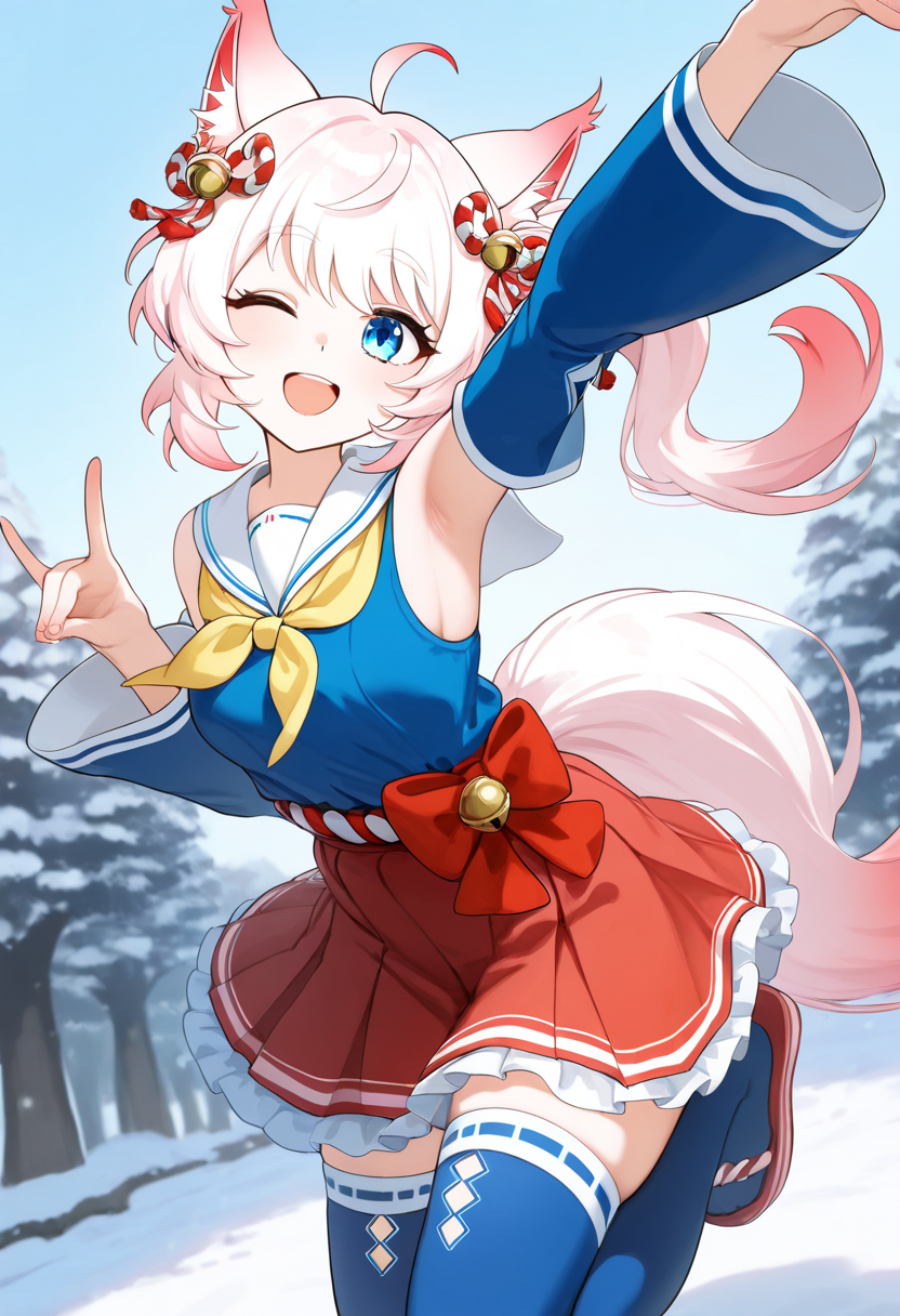 小乳房,蓝眼睛,粉红色头发,天线辫,侧马尾,动物耳朵,尾巴,发饰,
