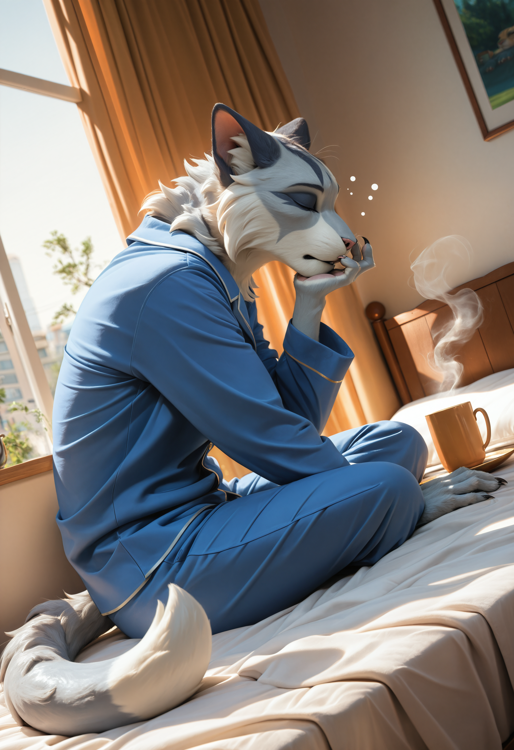 // Illustrious: masterpiece, best quality, amazing quality, very aesthetic, absurdres, newest, detailed fur, depth of field, blurry background