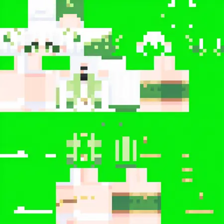 正面:minecraftskin, 1girl, solo, simple background, green background, full body, no mouth, no lineart, standing, (tag), (masterpiece, best quality, absurdres, highres, very awa, newest:1.2),
