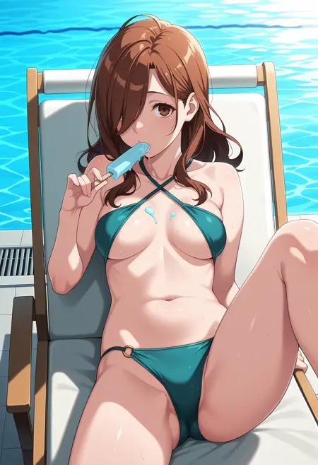 KJOizuko, brown hair, brown eyes, long hair, hair over one eye,