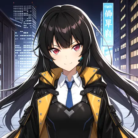 "xiaolin, 1girl, solo, black hair, red eyes, small breasts, long hair" 활성화 태그