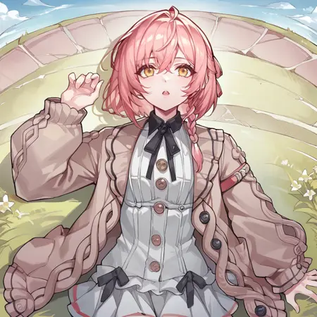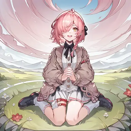 斯库尔德,粉红色头发,短发,黄色眼睛,头发遮住一只眼睛,天线辫,辫子,