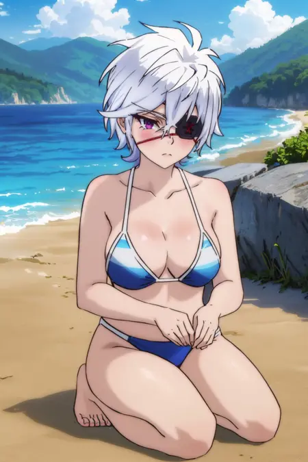 트리거 + 외모: oboro, 단발, 흰 머리, 안대