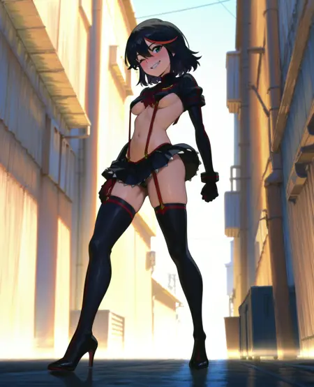Senketsu Transform: S3nk3tsuTransf, underboob, thighhighs, suspenders, high heels, skirt, gloves, revealing clothes