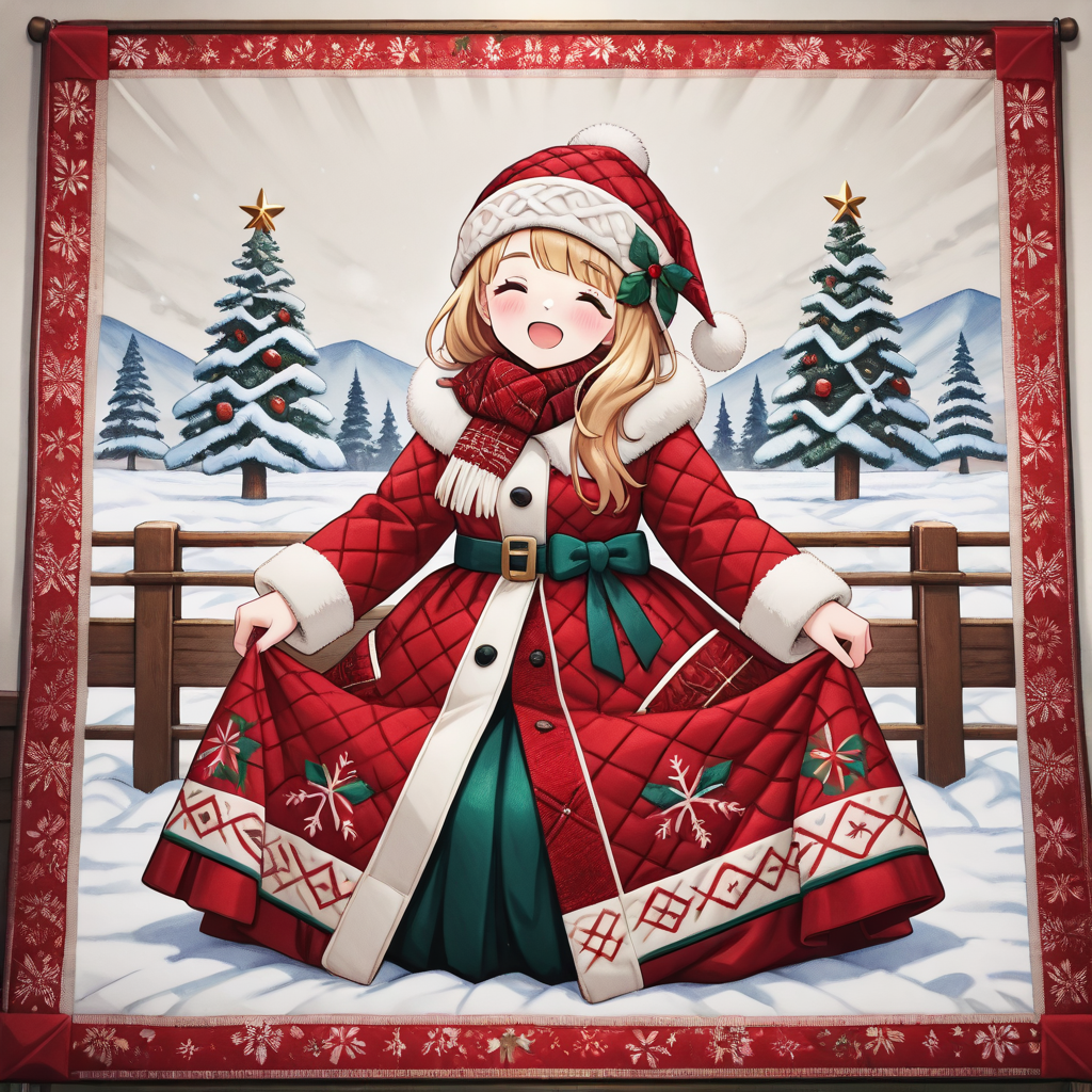 母が作った多くのキルトを見つけて、そのいくつかにAI処理を施して、この素晴らしいChristmas Quilts用のLoRAを作成しました。全体のキルト画像を作成したい場合、または既存のクリスマスシーンに一部をインペイントしたい場合に役立ちます。