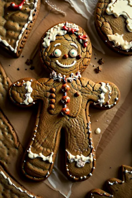 , best quality, realistic, food focus, <lora:GingerbreadQuiron_v01i03e25t05_Lora:1> gingerbreadQuiron, trending on art station, insanely detailed, sharp, 8k, food, gingerbread,