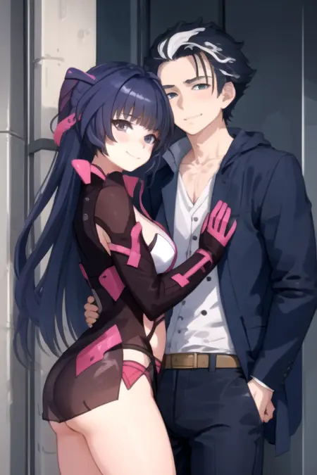 JoyceMei, 1boy, 1girl, hetero, standing, smile, cowboy shot