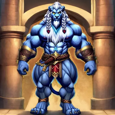 使用した基本プロンプトは以下の通りです:kimahri (final fantasy x)+, Kimahri_Frinal_Fantasy_X, furry, lion head, broken forehead horn, point ears, blue skin, yellow eyes, white body hair, blue fur, blue skin, long braided white hair, beard, white beard, lion tail, thighs, muscular male, large muscles, furry male, leather hair braid