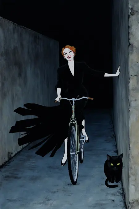 • 그의 일러스트는 흑백과 화려한 색상, 특히 그의 상징이 된 빨강을 강렬한 대비로 활용했습니다.