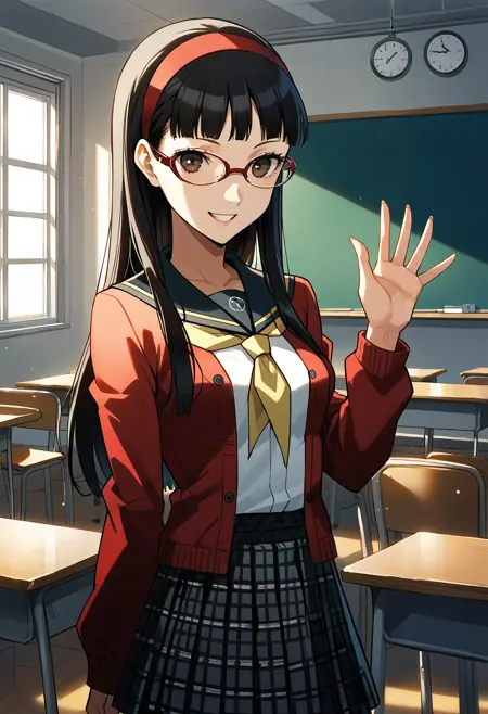 p4yukiko, amagi yukiko, long hair, black hair, bangs, hairband, glasses, red-framed eyewear