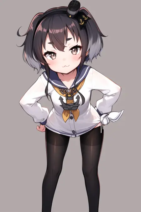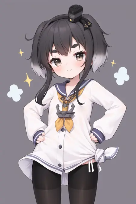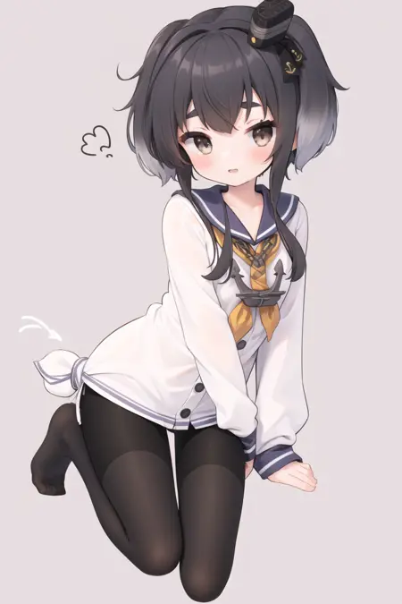 tokitsukaze is the main activation tag, for her outfit, use sailor dress, black pantyhose, mini hat, yellow neckerchief.
