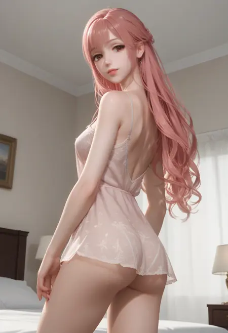 베이스 니키: nikki1, 분홍 머리카락, 갈색 눈, 긴 머리