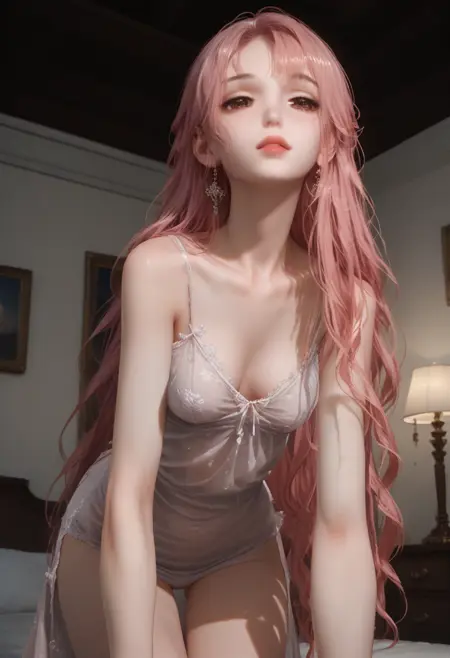 베이스 니키: 분홍 머리카락, 갈색 눈, 긴 머리, nikki1