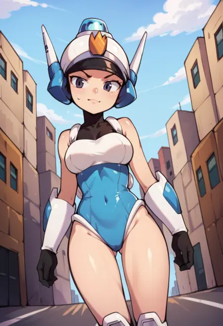 트리거: patricia_wagon, 헬멧, 가슴, 레오타드, 장갑,