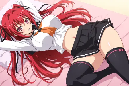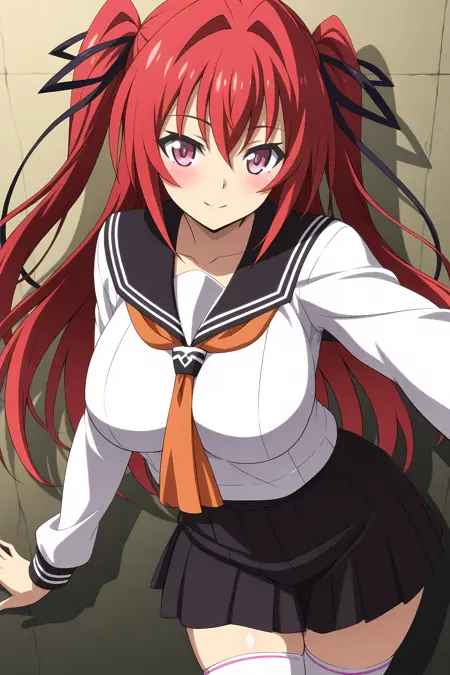 "naruse_mio, 1girl, long hair, hair ribbon, red hair, red eyes, large breasts, ribbon, two side up, bangs" 활성화 태그