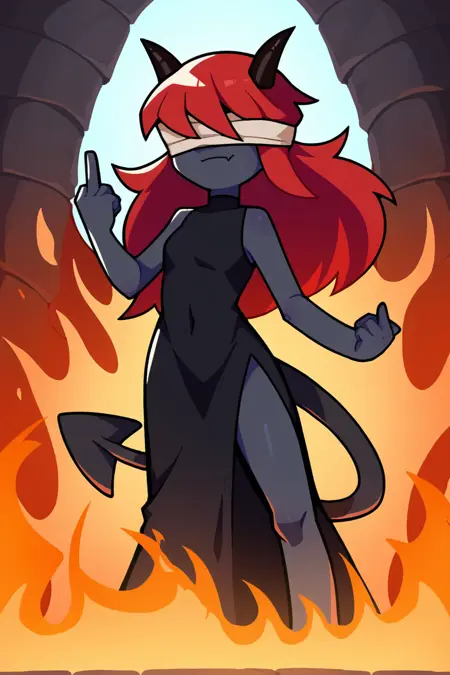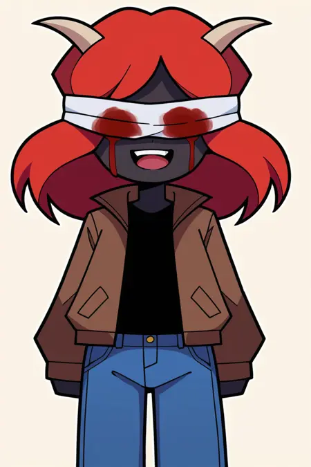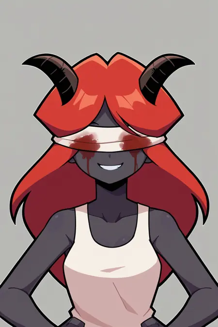 变体包括:灰角、黑角、红角、灰皮肤、腰间绷带、胸部绷带,以及若想要眼罩上有血迹,可加“blood”。