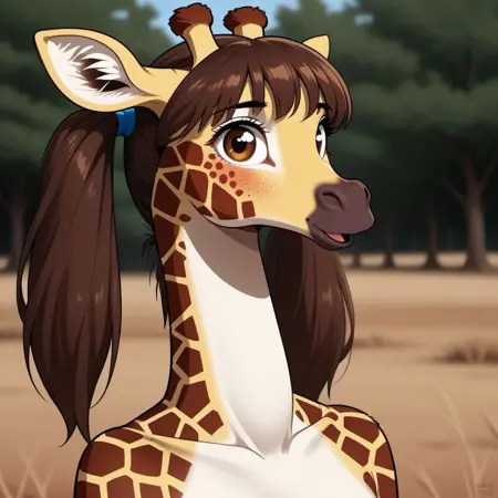 Creates an anthro giraffe girl. Brown hair, brown eyes, longer neck than the average anthro female.