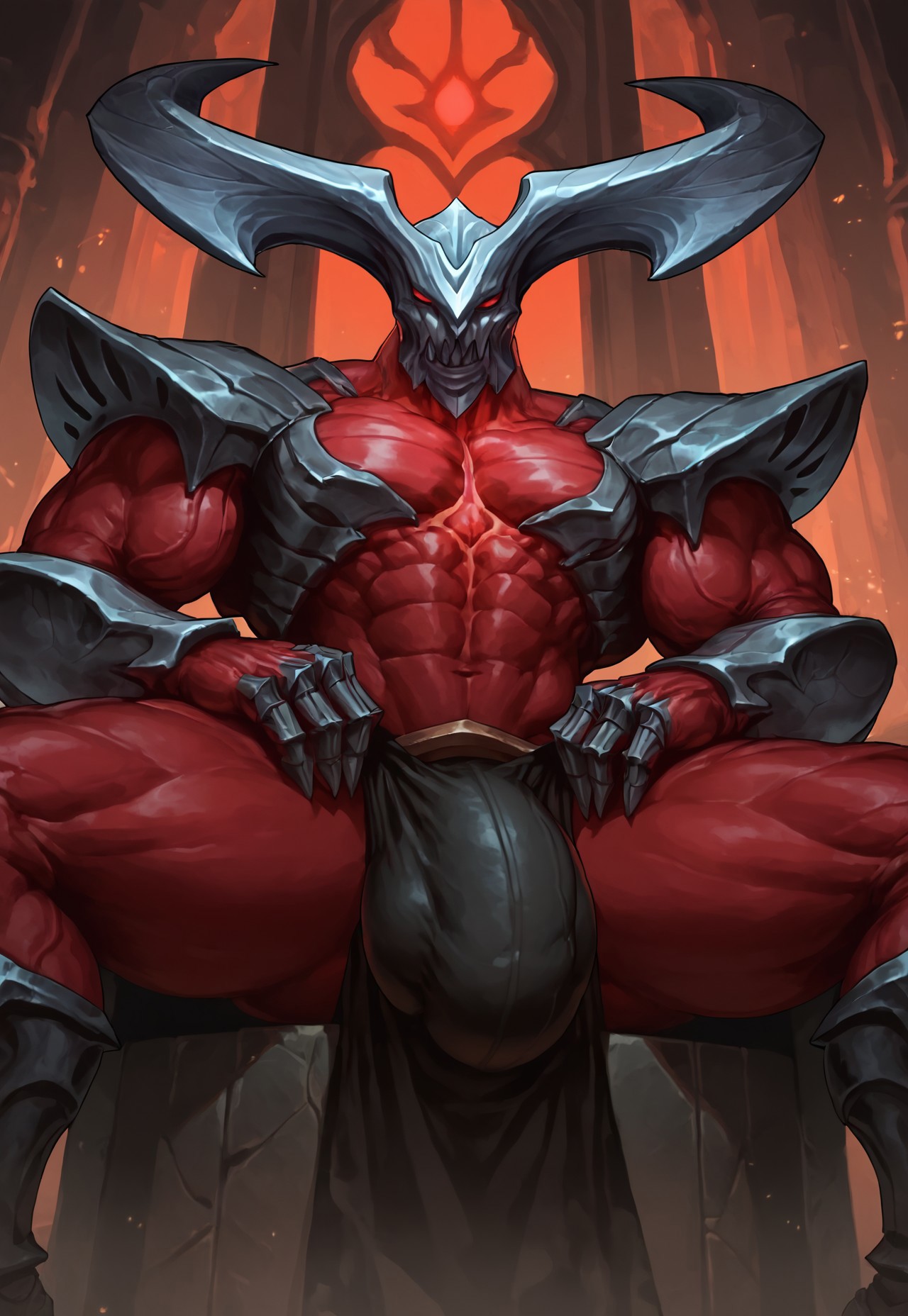 タグ: ラースト、ダークイン、角、鎧、リーグ・オブ・レジェンド、赤い体、赤い目
