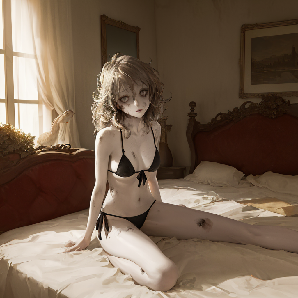 注意本材质不要使用面部修复,另外可以尝试使用"blood"来增加一些血腥效果