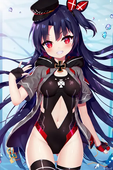 | 학습된 단어 | zzU73, red eyes, black hair, hair ornament, hair ribbon, long hair, one side up, 복사됨! zzU73, red eyes, black hair, hair ornament, hair ribbon, long hair, one side up, hat, jacket, gloves, very long hair, swimsuit, short sleeves, fingerless gloves, iron cross, one-piece swimsuit, center opening, black thighhighs, 복사됨! |