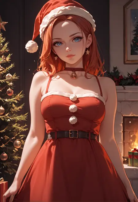 santa_dress, 1girl, solo, christmas, hat, sfw