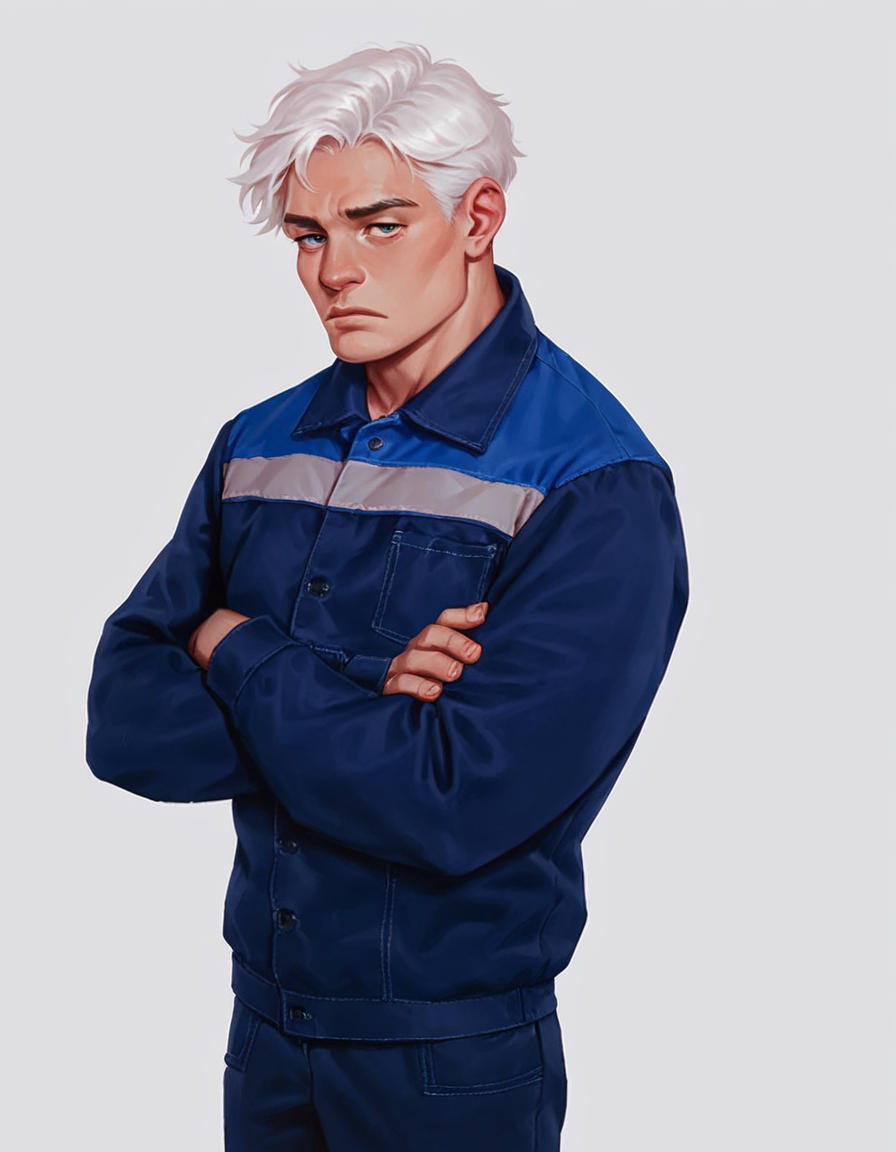 복장 “시티-마스터” - 벨크로로 고정된 이색 회색 자켓과 진회색 바지. 주머니가 정말 많아요! 덜 인기 있지만 가격 대비 여전히 좋습니다. 긍정적: cmt
