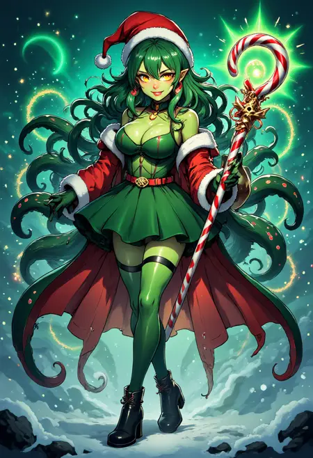 크툴루 크리스마스 LoRA에 오신 것을 환영합니다! 어두운 우주적인 공포가 크리스마스의 즐거운 혼란과 만나는 곳입니다. 이 LoRA는 이미지에 기묘함, 광기, 그리고 축제 분위기를 조화롭게 결합해, 끔찍하면서도 아름답고 매혹적인 색채를 지닌 예술 작품을 만들어냅니다. 단순히 키워드 **'CthulhuChristmas'**를 추가만 해도, 엘드리치 괴물들이 산타 모자를 쓰고, 크리스마스 트리가 빛나는 촉수로 휘어지고, 눈송이가 이차원적인 차원의 색채로 반짝이는 초현실적 세계가 열립니다.
