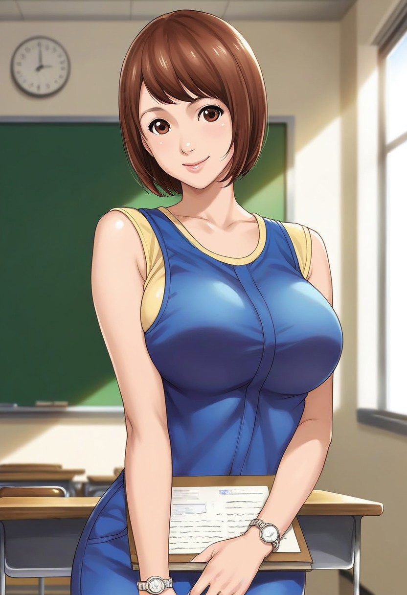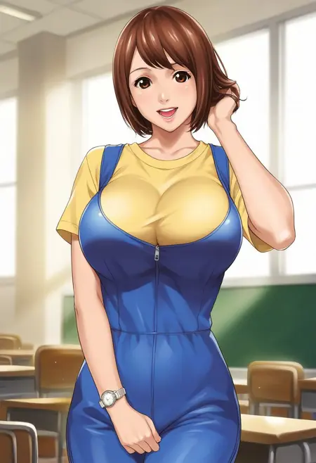 태그: 쿠도 미카, 갈색 머리, 단발 스타일, 갈색 눈, 거대한 가슴