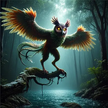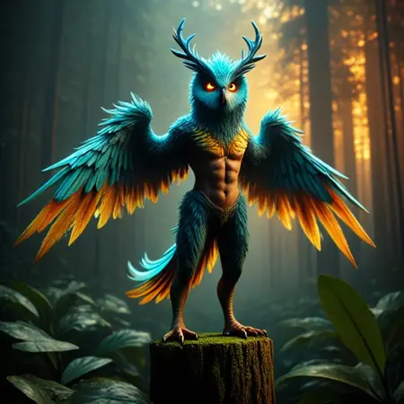 ポーズの提案:「翼を広げて飛翔中」、「古代の枝にとまっている」、「腕を動的に広げている」。 🕊️