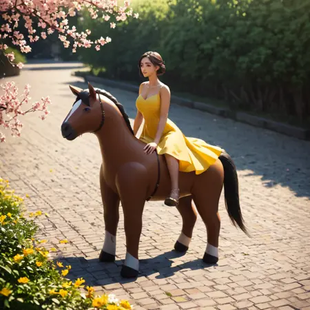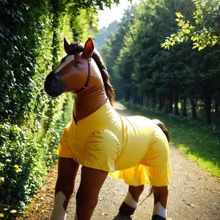 プロンプトの書き方は基本的に類似しています (v1.0の画像を参考にしてください) が、「inflatable」という単語は茶色のウマではなく、カラフルなぼんやりした塊を引き起こす可能性があります(これは過学習またはCFGが高すぎる兆候かもしれません)。これにより、inflatable な馬や十分にトレーニングされていない要素を生成するのが難しくなります。