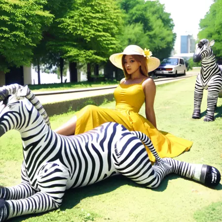 ベースモデルは Pony Diffusion V6 XL で、人間を含まない約327枚のインフレータブルなウマやその他のおもちゃの写真を使用してトレーニングされました。ただし、デフォルトでは、最も人気だった第2世代の6フィートのJet Creationsのシマウマに最も似たシマウマを生成します。