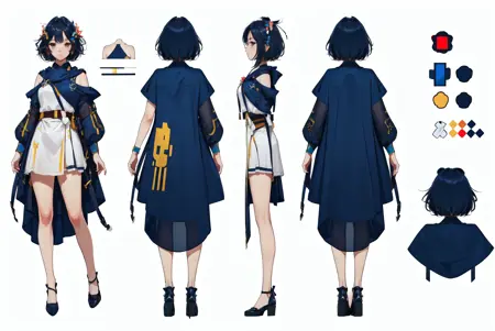 <lora:reference sheet-model sheet:1> , reference sheet, model sheet, simple background, (multiple views, [full body|from behind|from side|from front|close-up|upper body|portrait]:1),