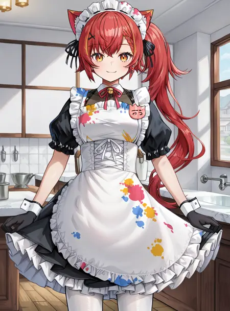 "TsunaMaid, side ponytail, black dress, Black gloves,White tights,Short skirt"