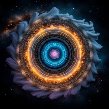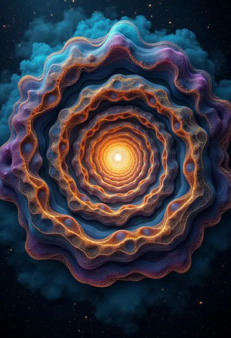 幾何学的精緻さ:滑らかなグラデーションと鋭いエッジを持つ、完璧に整列した同心円。