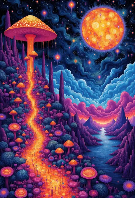 이 LoRA는 환상적이고 생생하며 꿈같은 시각적 효과를 생성하여 LSD나 버섯 여행의 본질을 포착하기에 완벽합니다. 환상적 예술 애호가들을 위해 설계되었으며, 케이루스코프 패턴, 생생한 색상, 그리고 시청자를 초현실적인 경험으로 이끄는 마인드빙딩 풍경을 생성합니다.