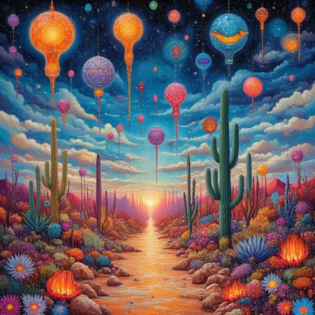 최대 효과를 위해 초현실주의, 자연, 또는 우주 탐색을 연상시키는 프롬프트를 사용하세요.