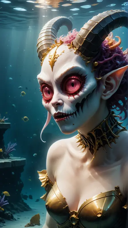 μμ ν둬ννΈ: A KrampusStyle bride at a wedding lora:KrampusStyleSDXL:1