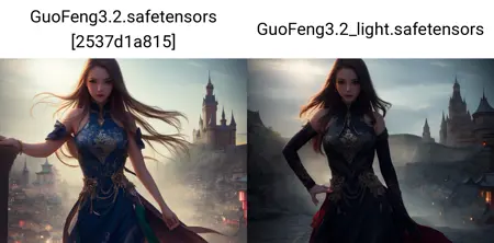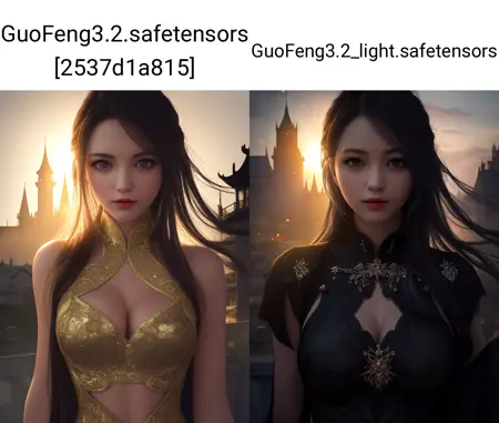 GuoFeng3.2_Light: Through GuoFeng3.2, Lora based on Noise Offset training is integrated to enable the model to draw more beautiful light and shadow effects (Lora: epi_noiseoffset/Theovercolor8's Contrast Fix)