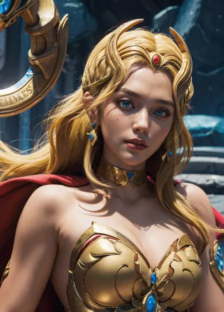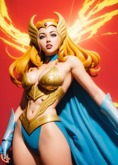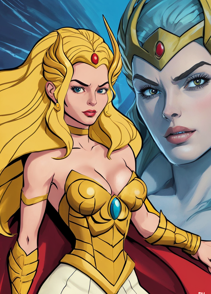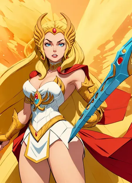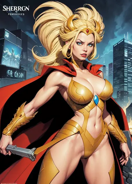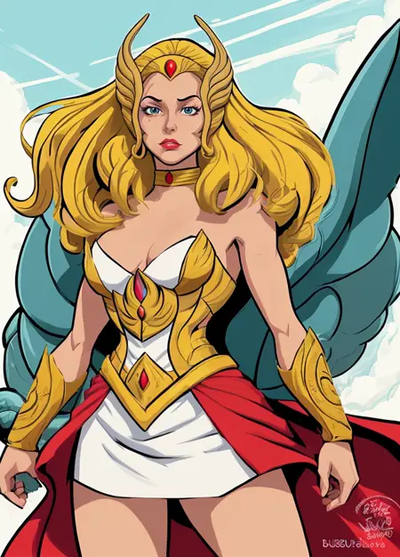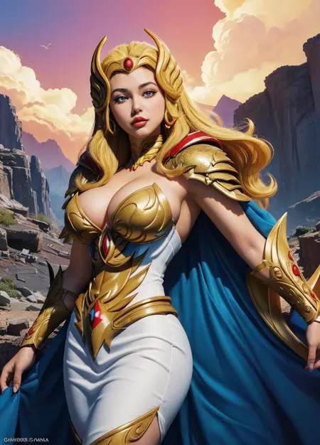 cartoon,(best quality:1.17), (masterpiece:1.17), (detailed:1.15), by Rob Liefeld, style of Neal Adams, SheRaQuiron character, 1girl, bue eyes, rampage, lora:quiron_SheRa_V2_lora:0.77