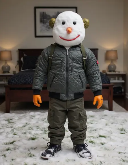 这个LoRA能生成比常规Flux渲染更真实的雪人形象